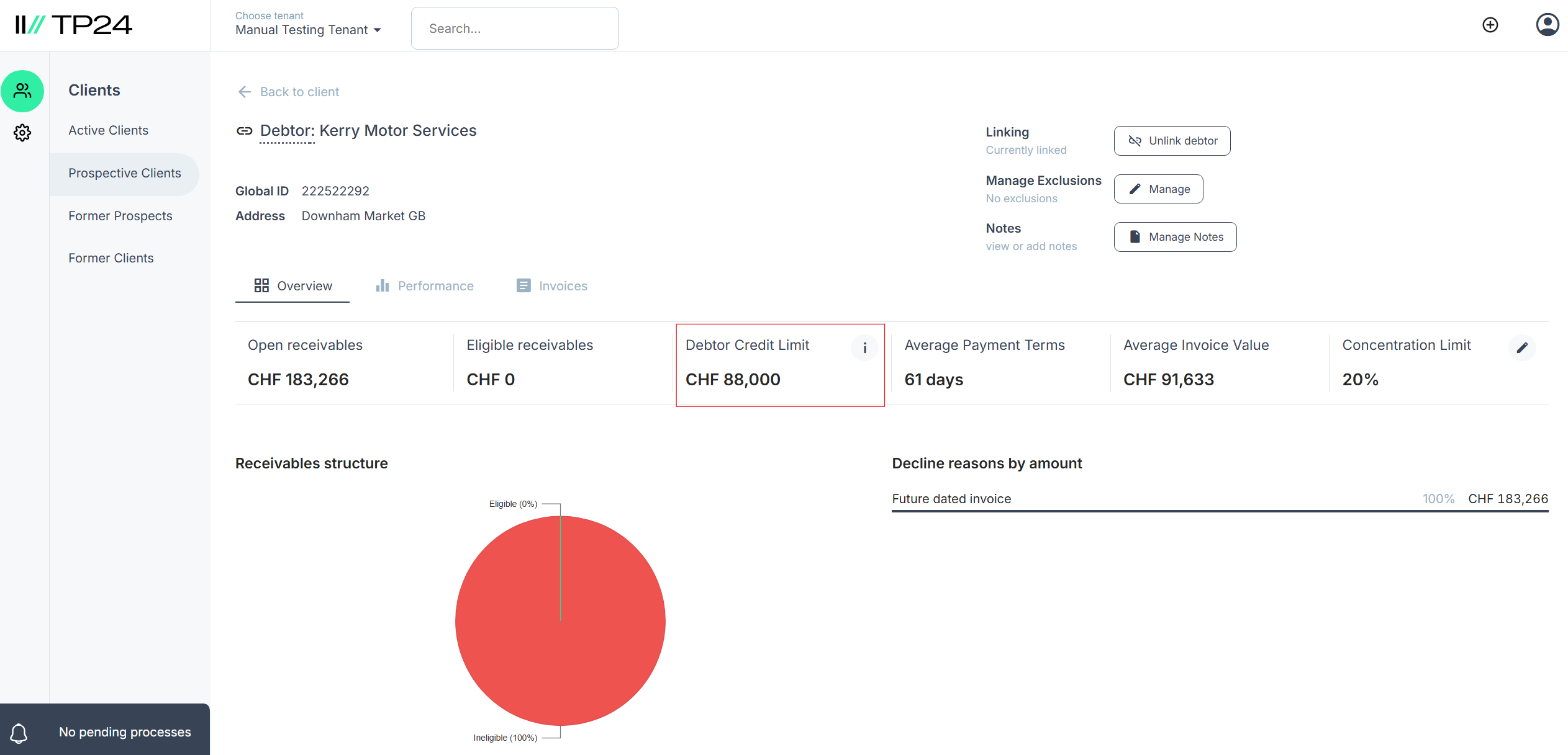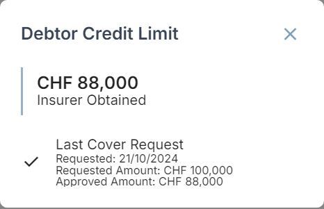 We’ve improved the visibility of insurance request details for users who do not have permission to access the full edit insurance modal. Now, when viewing the insurance credit limit on the debtor credit limit modal, the following details from the latest Allianz cover request are displayed: